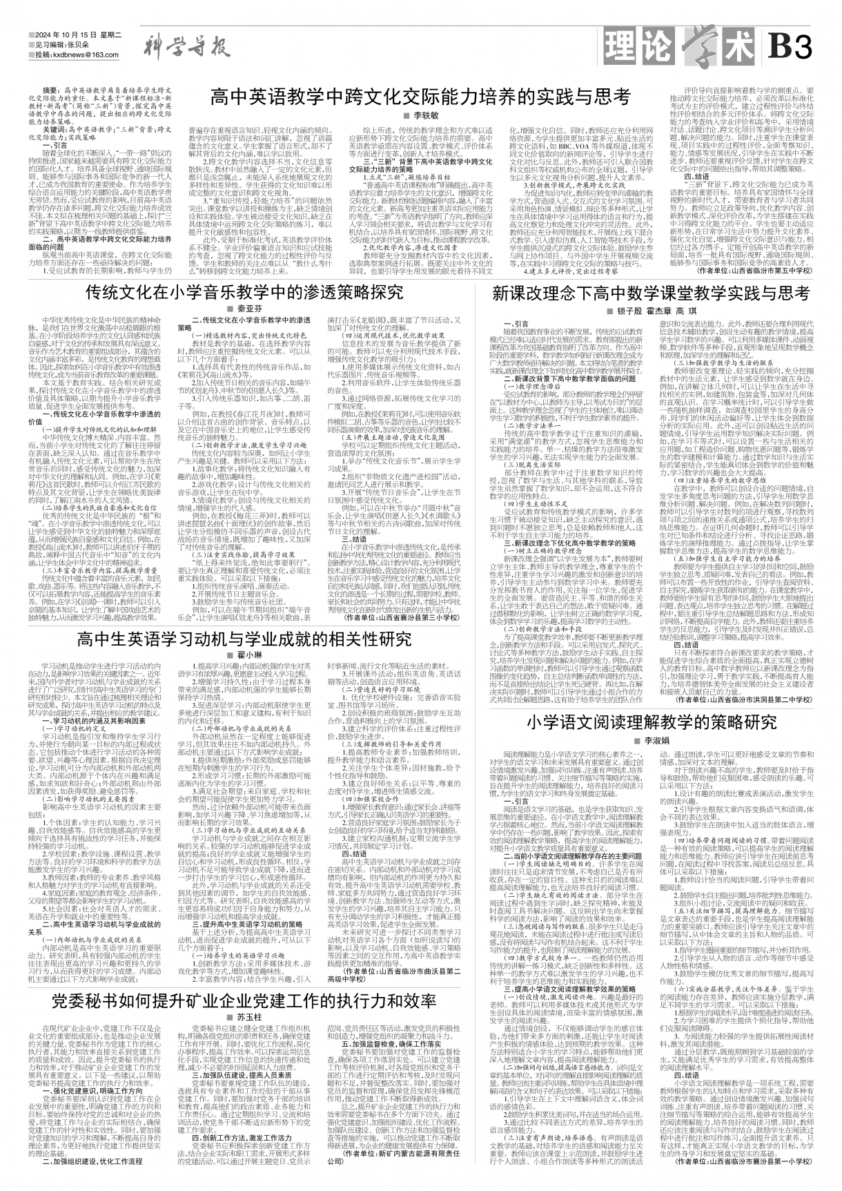 《科学导报》2024年10月15日版面速览-ag官网